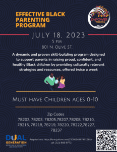 We’re thrilled to launch the Effective Black Parenting Program, starting July 18, 2023, at 5 PM in Lockwood Park (801 N. Olive St.) 🖤✨ Calling all parents with kids aged 0-10! Join us for this dynamic skill-building program, tailored to support you in raising proud, confident, and healthy Black children. Limited spots available, so register today at Register here: https://form.jotform.com/230956438749168